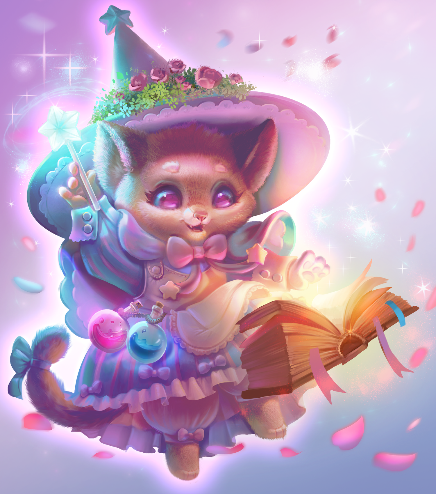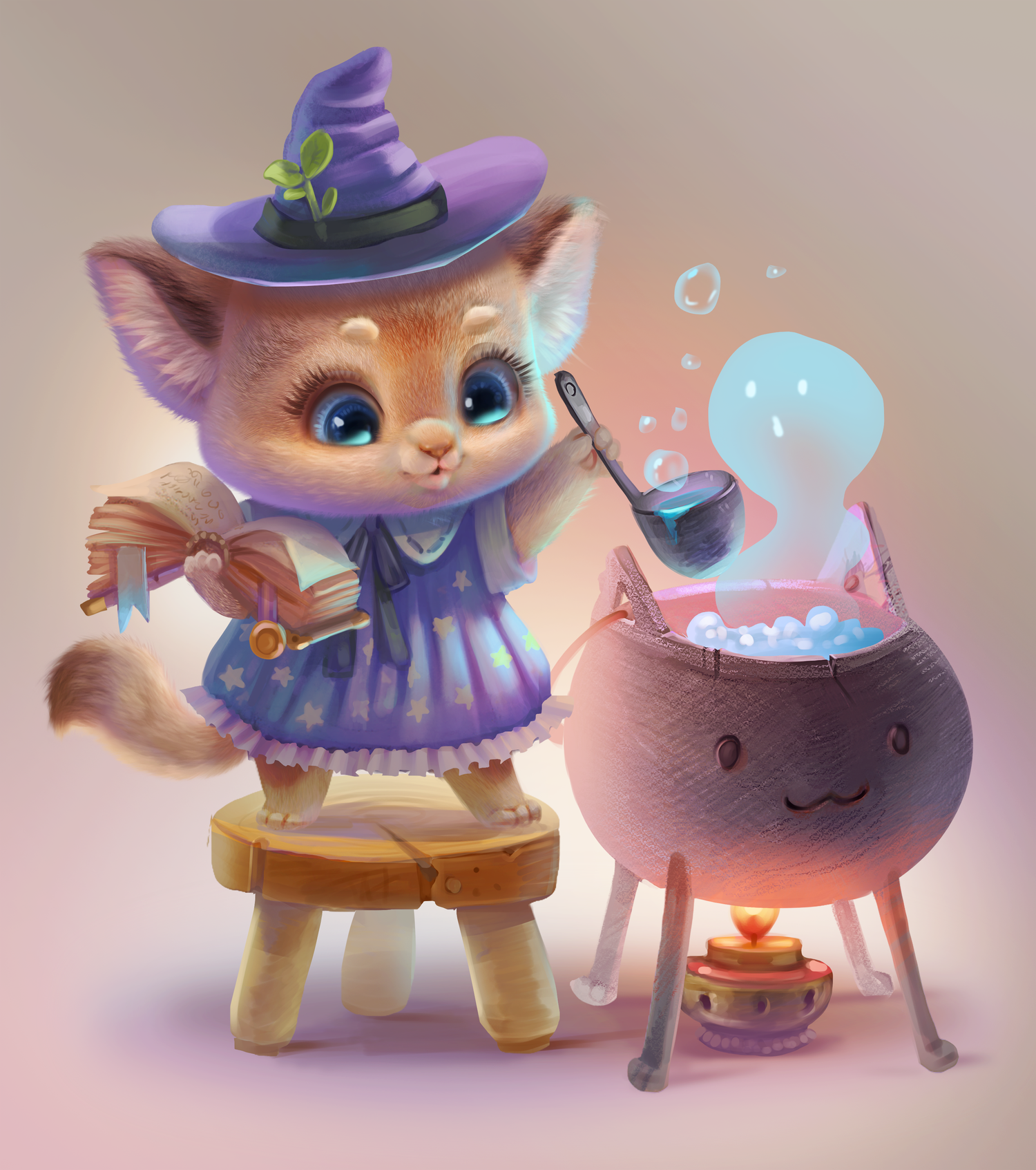 With her heart as big as her curiosity, this sweet and kind little kitten dreams of becoming the true familiar, always eager to lend a helping paw. Though she's still mastering the art of being a companion, her enthusiasm knows no bounds. She's constantly on the lookout for ways to assist her fellow humans, whether it's by trying her paws at cooking or simply offering a comforting purr. However, there's just one little problem – she's a disaster in the kitchen!